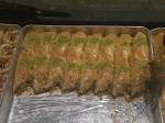Baklava is generally speaking a phyllo like dough filled with a nutty mixture. Usually the stuffing is made of pistachios, hazelnuts or walnuts. This dessert is the most popular one and the one that is the best know around the world. Baklava is a Turkish staple, that is served in almost all restaurants and take-away bars. Very often, it is not only sprinkled with nuts, but also topped with ice creams or kaymak. Baklava is sweet, moist and crunchy in the same time. The phyllo-like dough is delicate and crunchy.