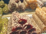 Lokum rolls come in different combinations. Some of them are fully nougat like, some of them have a both jelly and nougat like filling. Depending on that, either more fruity or nutty flavors are to be found.
