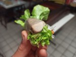 Apart from that, each part of the roll has a nice tuna stripe, a rich bunch of a fresh and crunchy green lettuce and of course some finely julienned carrots and very thin rice noodles. These noodles are in a minority what is unusual.